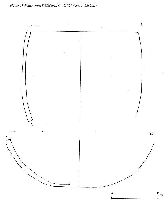 Figure 46 Pottery from BACH area (1 - 2270.X4 etc; 2- 2260.X1).