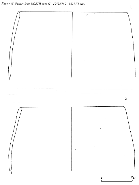 Figure 48 Pottery from NORTH area (1 - 3042.S1; 2 - 3021.X1 etc).