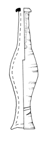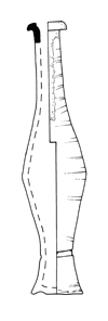 The inhumation was poorly preserved, a rodent having eaten its way lengthwise through it (as can be seen from the rodent burrow), depositing some of the ribs and vertebrae to the west and north of the cranium. The head was apparently originally in a flexed position resting against the west, short end of the wooden coffin, of which fragments of mineralized wood and rusted nails still remain. The unfused pelvis, sacrum, and epiphyses of the long bones indicate that this individual was not yet out of adolescence. A molar still in the crypt confirmed this picture. While it is not possible to determine the gender of so young a skeleton in such a poor condition, the grave goods indicate it was a female. ‘She’ was extended, as mentioned, the cranium and part of the mandible found on the right scapula. The limbs were extended, both hands having rested on the hips, possibly grasping two burnt clay vessels (Fig. 18).