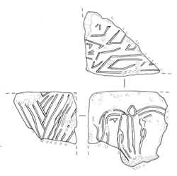 Directly underneath this levelling bricky layer, there was a large and deep midden deposit (units (7864), (7880), (7895). It was composed of friable, mid and light brown and mid grey mixed sandy clay loam. Unit (7880) was placed directly on the fallen roof (or alternatively a floor of the Neolithic building). Directly above four corners of the fallen roof concentrations of constructional elements were located within the middens (units (7881), (7882), (7886), (7894). They were composed of the mixture of destroyed bricks, mortar, plaster, and clay. Numerous fragments of red painted plaster associated with the building wall were found in these deposits.