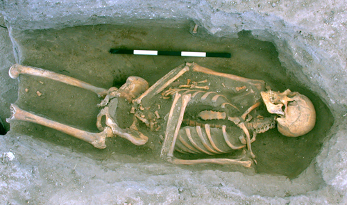 4. Cluster of bones. One such a case was recorded in the trench extension (F.1151). It comprised only leg bones and very small fragments of a skull. The bones might have been dumped into this spot after being removed from other location. Alternatively, the burial might have been so badly destroyed as a result of a number of postdepositional processes.