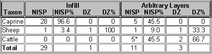 Table 2: Relative Proportions of Mammalian Taxa from the TP Area by Number of Identified Specimens (NISP) and Diagnostic Zones (DZ)