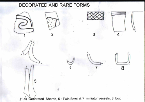 The Neolithic sherds have been studied to be able to identify the indicative or representative forms or technologies which may indicate approximate dating levels.