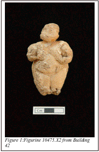 Word quickly got round that we had found a ‘goddess' figurine. I was amazed that people emailed me from as far away as the United States, Britain, South America, Australia just a couple of days after we unearthed the small limestone figure. Badly eroded (Fig. 1), it nevertheless had all the classic proportions of the naked representations of women that Mellaart had found in the upper levels of the site in his excavations in the 1960s. The current project had not found an example of this famous figurine type since it began working 1993. So when the object was found, in redeposited midden material in a grave, we all felt the thrill of excitement. |