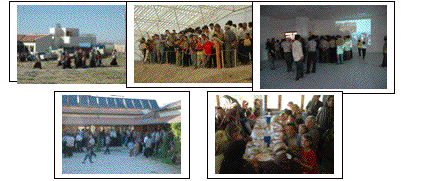 Figure 4: Arrival of villagers at the site. Site tour. Presentation. Dinner in the courtyard and dining room.