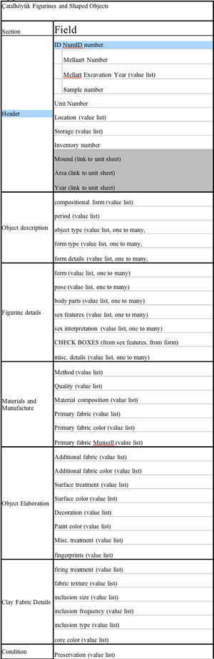 This season was notable for two rather sensational figurine finds, one of which made the press headline, “…Mother Goddess found at Çatalhöyük;” but the most important and productive figurine research this season involved the less glorified work of implementing a new research program, the core of which involved constructing a new database. Although often unacknowledged, the pragmatics of database design engage and shape the particular ways in which we interrogate and interpret data sets. Databases do not store objective information, but organize, document and demonstrate various impressions filtered through particular classificatory schemes operative in our examination and description of archaeological materials. A notable objective of the Çatalhöyük project aims to foster research that not only moves across taxa, but also across traditional specializations within the project.