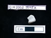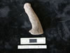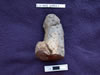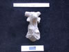 10475.X2 is a robust female figure made from marble or calcite (highly corroded) with divided legs, large buttocks, and a slightly protruding stomach. The figure holds its arms up to its breasts and incised lines indicate the breast divide, pubic triangle/stomach, and divided legs on the front; similarly incised marks delineate arms, divided legs, and a horizontal detail across the upper legs on the back. The head and face appear to have been worked, but possibly modified or defaced , suggesting that no facial details were executed or were removed. There is a suggestion of hair or a head-cap. Voids are present on the bottom of the legs and between the chest and arms (larger on the left side) and there is a deep groove on the top of the head. Yellow-orange staining appears on the upper back, buttocks, down the back/side of left leg, around neck, face and top of head; conservators believe this staining to natural and organic. |