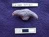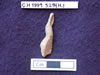 10264.X1 is a marble anthropomorphic figure with long neck and incised/carved face. Eyes are indicated by two inward slanting, incised slashes; the carved nose gently protrudes from face. The head is delineated from neck by a smoothly carved line, and the neck is differentiated from the body by a similar but slightly coarser line at the neck/torso interface. The upper torso shape is suggestive of shoulders and arms crossed over the chest to meet in front. A wide, smoothed groove separates the upper and the lower torsos and is aligned with the upper torso in front, but extends outward in the rear emphasizing the buttocks. |