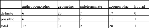 Although preliminary, from a visual analysis we found that in numerous anthropomorphic forms—largely the abbreviated types—the trunk of the body was not completely upright but bent forward, giving these examples a phallic resemblance. If one turns them around the trunk (with or without elaborated head) many resemble a penis (some have lines around the top that look like wrinkles) and the two stubby legs protruding forward contribute to the overall visual effect of male genitalia. This is only one possible interpretation and such a visual play may have been intentionally or unconsciously created.