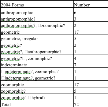 Table 48: 2004 Figurines and Clay Objects by Form: Basic Counts