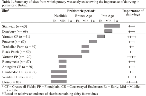 Table 56: Summary of site from which pottery was analysed showing importance of dairying in prehistoric Britain